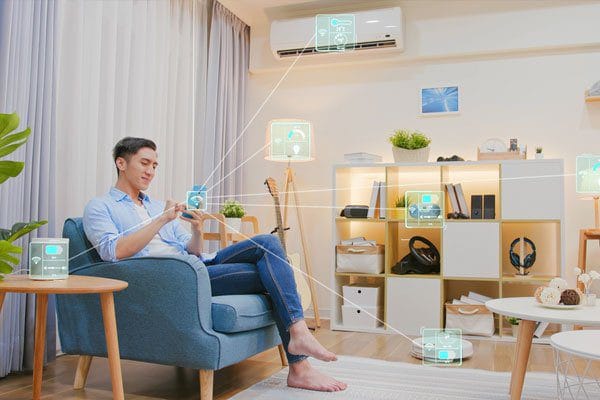 - حيث يتم التواصل مع جميع هذه الأجهزة الداخلية عن طريق الهاتف الجوال مما يوفر الوقت الكبير والجهد للمالك ولمستفيد، والتحكم في استخدام الطاقة بشكل أكبر.