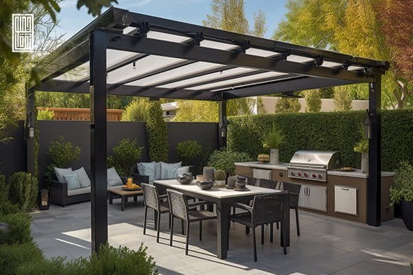إذا كنت تبحث عن تصميم أكثر دخولًا وجاذبية لمساحتك الخارجية، فيمكنك النظر في البرجولات الخشبية والمعدنية والزجاجية. المظلات الخشبية تعطي مظهرًا طبيعيًا ودافئًا، بينما تضفي البرجولات المعدنية لمسة معاصرة على المكان. أما البرجولات الزجاجية، فتضفي لمسة عصرية وتسمح بالاستمتاع بالمناظر الخارجية دون تحجب الرؤية.